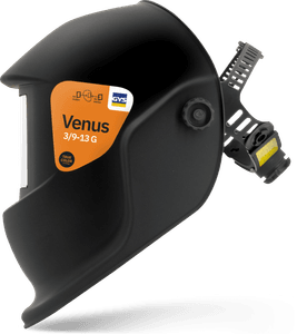 VENUS 3/9-13 G TRUE COLOR er en kompakt og brukervennlig sveisehjelm som gir effektiv beskyttelse av ansikt og øyne mot UV-stråling, infrarød stråling og sveisesprut. Den helautomatiske nedblendingen sørger for at hjelmen går fra klar til mørk tilstand på kun 0,08 millisekunder ved lysbuetenning.